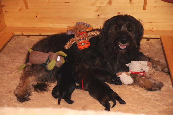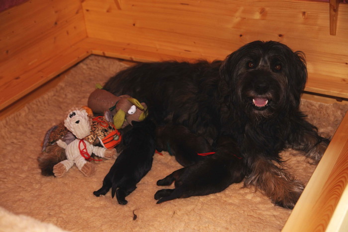 Urmel und Cobold sind läufig und wir haben uns dazu entschieden beide decken zu lassen. Für mein Urmeli ist es der letzte Versuch und vielleicht bastelt sie mir ja doch noch einen kleinen Wurf:-), nach vier Jahren Welpen Abstinenz. Sie hat sich mit einem einzigen Wurf mit 3 Hexlein nicht wirklich überarbeitet.- Coboldine hatte ihren letzten Wurf 2013, so dass wir uns auf einen Sommerwurf mit ihr freuen. Unsere Youngsters, Briardhündin Mimi und Gos Hündin Troll, stehen schon zum Hexlein sitten in den Startlöchern.
