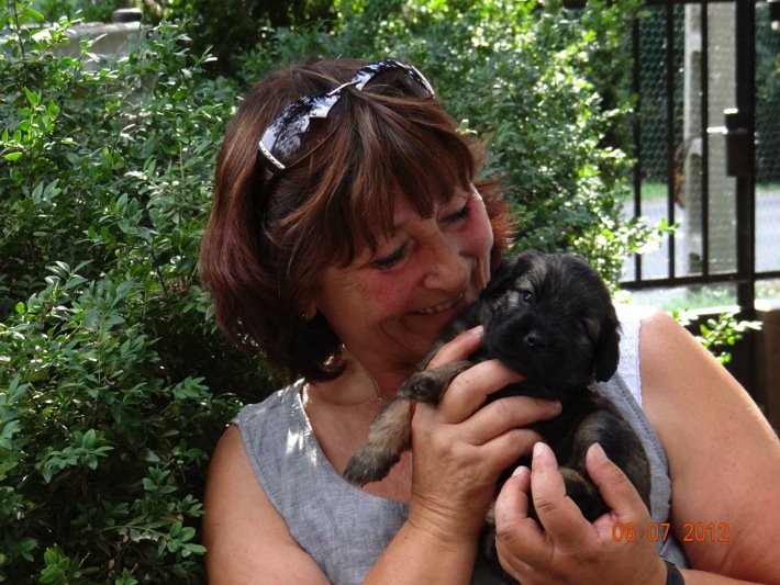 Unsere Gastgeber, Eva und ihr Mann, haben von Chabo und ihrer Hündin Morza vier Wochen alte Welpen, so dass wir sehen konnten, dass Chabo sehr schön vererbt. Anne ist fast schwach geworden und hat mit der kleinen Hündin 'rot' geschäkert, will aber doch lieber weiterhin ihre Briards züchten. Einige der Welpen suchen noch Familien. Wer also Interesse hat, kann sich gerne an mich wenden.