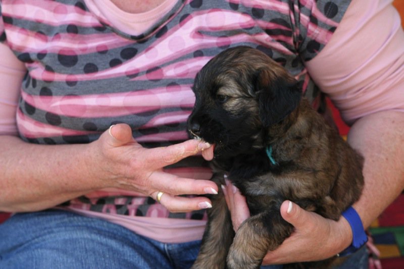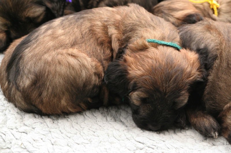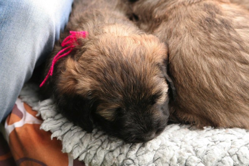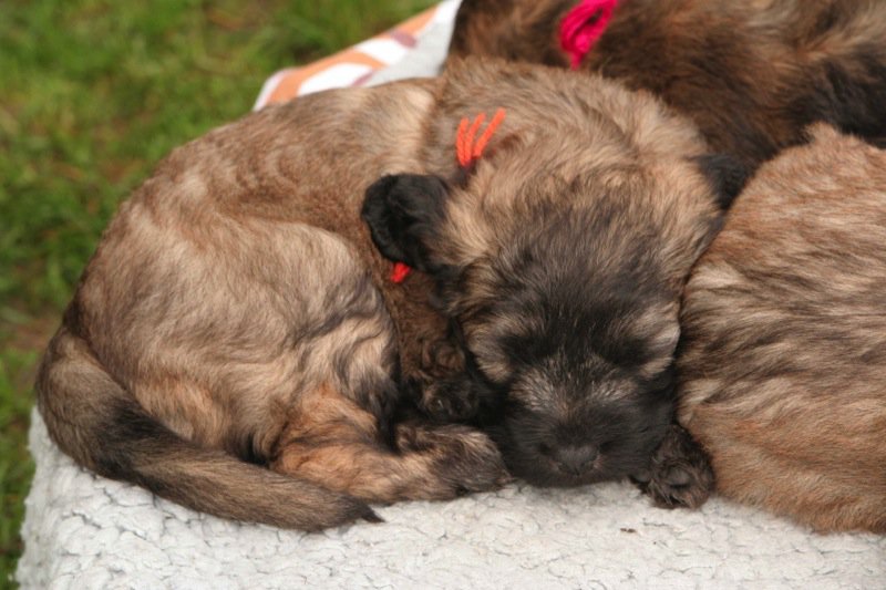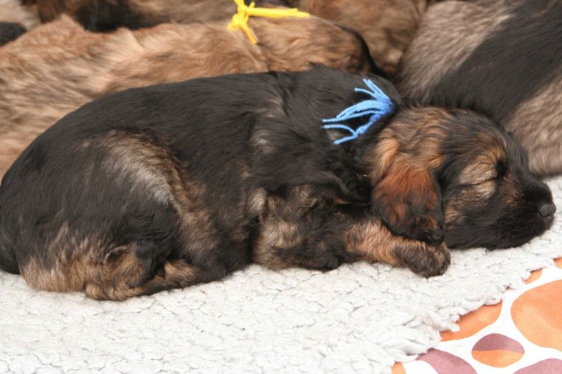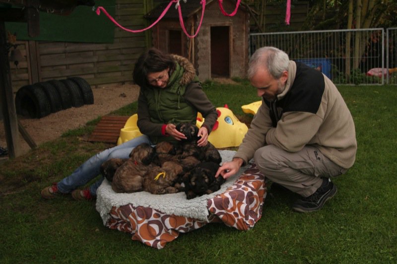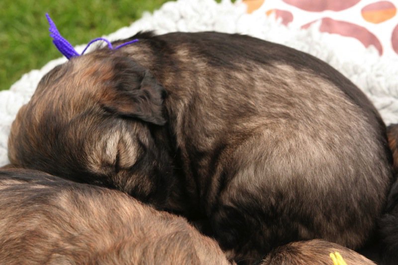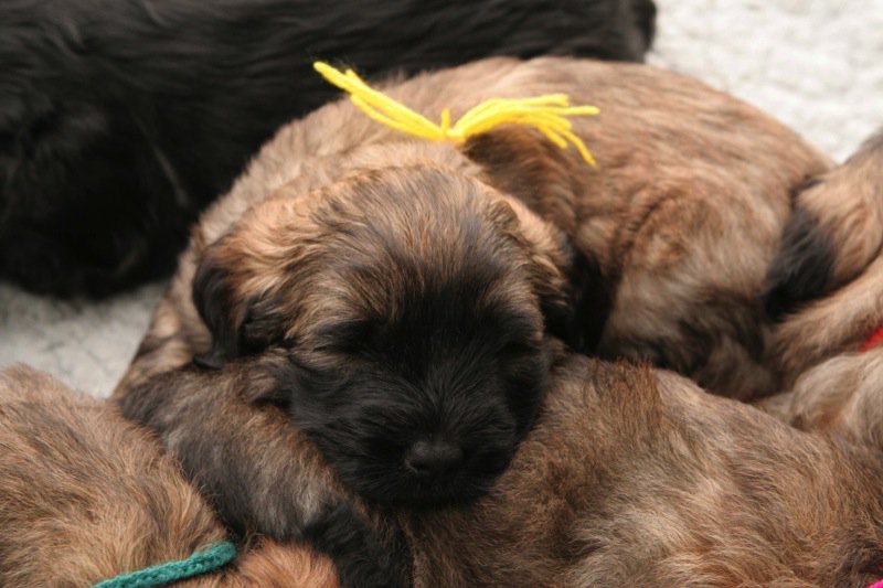Was sich bei den Briardhexlein als zwar nicht einfach, aber doch machbar erwies, nämlich die Spielzeuge mit den entsprechenden Bändchen den Welpen für das Fotoshooting zuzuordnen, erweist sich bei unseren Gossos als ein fast undurchführbares Unterfangen. Alleine geht es gar nicht und so habe ich beim Fotografieren einfach genommen was ich so aufs Bild bekommen habe. So kamen dann ganz lustige Duos zusammen und alle waren zufrieden mit den eroberten Spielzeugen.