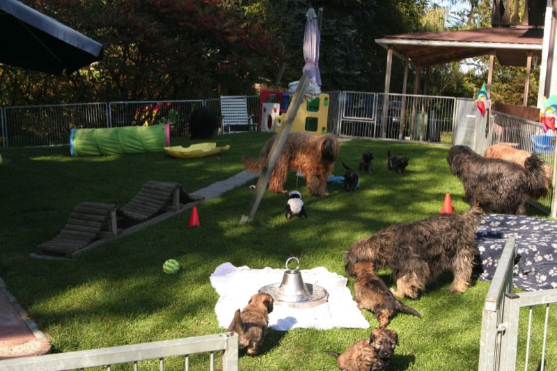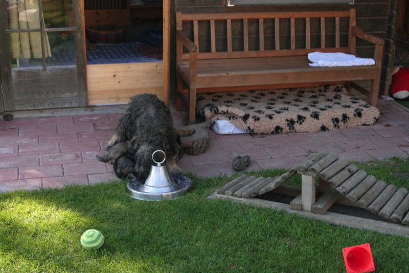 Sandkasten zu starten, mit den großen Hunden vorsichtig mitbellen wenn jemand kommt, und last