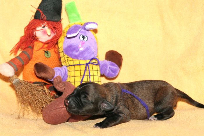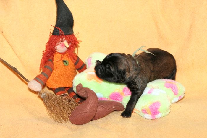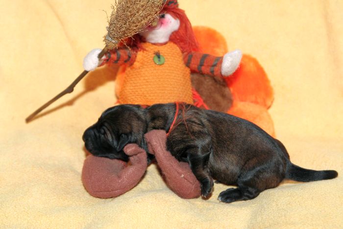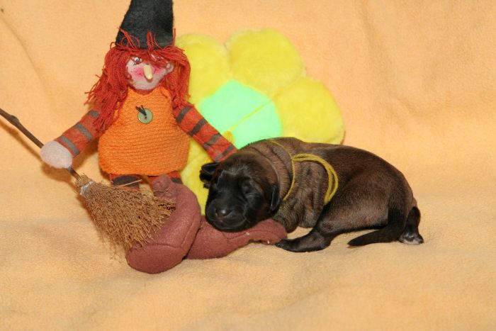Nach einem etwa zähen Anfang, die erste Hündin kann in Steißlage, 'flutschte' es derart, dass wir kaum mit dem Wiegen, Bändchen machen und Bettchen erneuern nachkamen. In gut 2 ½ Stunden waren alle 7 Hexenkinder in 'trockenen' Tüchern und wir fix und fertig.