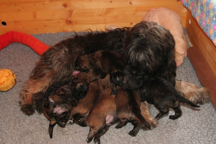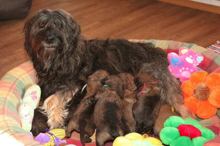 Unsere Hexlein entwachsen so langsam dem Kaulquappenstadium! Die Augen sind schon ein wenig geöffnet, die Beinchen funktionieren auch schon als Laufteile, die Lautäußerungen werden deutlich energischer und ähneln schon einem 'gefährlichen' Bellen und die Kontaktaufnahme mit uns Menschen wir deutlich mehr.