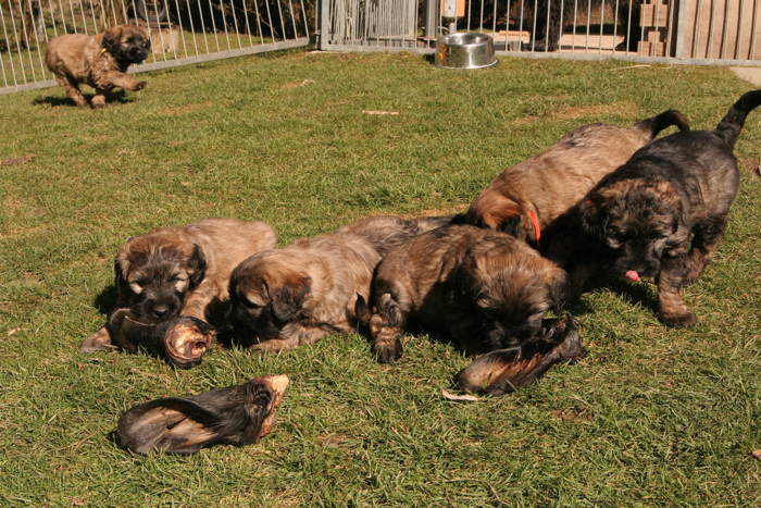 Die Hexlein haben ihr Talent entdeckt ... Fressen! Alles was ins Mäulchen passt, wird auch probiert. Egal ob Schuhe, Menschenarme, Gras, Rinderohren, Jacken, Besen oder auch das Schömmchen ...! Ihnen graut vor gar nichts. Selbst die Wurmpaste wurde hemmungslos verspeist. Nur ihre kleinen matschigen Kügelchen (Futter) begeistern sie nicht mehr sooo sehr. Dafür schmeckt der Quark und Joghurt supergut. Es ist nur etwas mühsam, ihn aus dem Fressen herauszupulen.