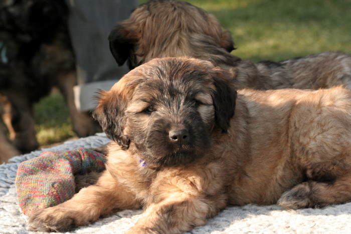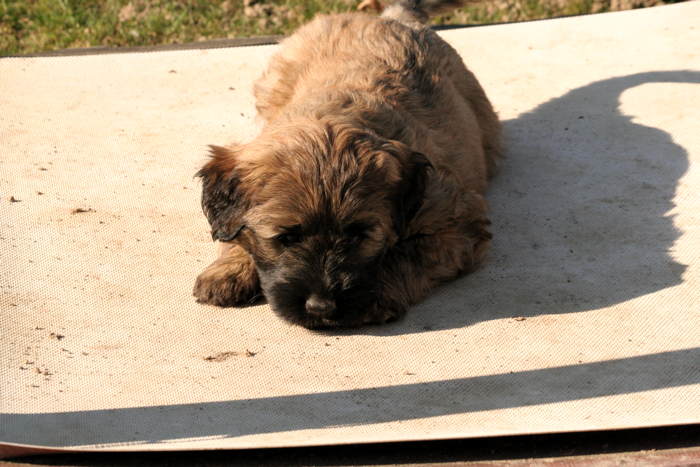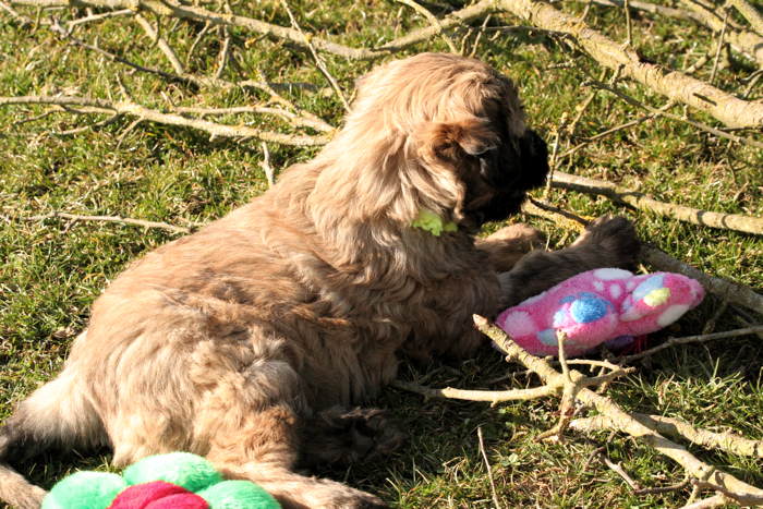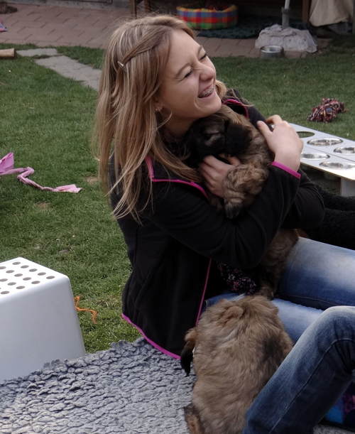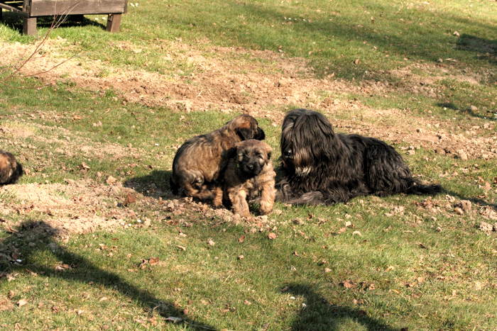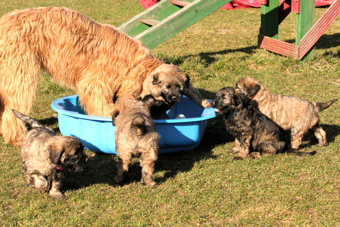 Täglich gehen wir mit ihnen jetzt spazieren und sie werden immer expansionsfreudiger. Alle Welpen haben jetzt schon ihre eigene Persönlichkeit mir der sie die vielen Neuen Dinge ganz unterschiedlich angehen.