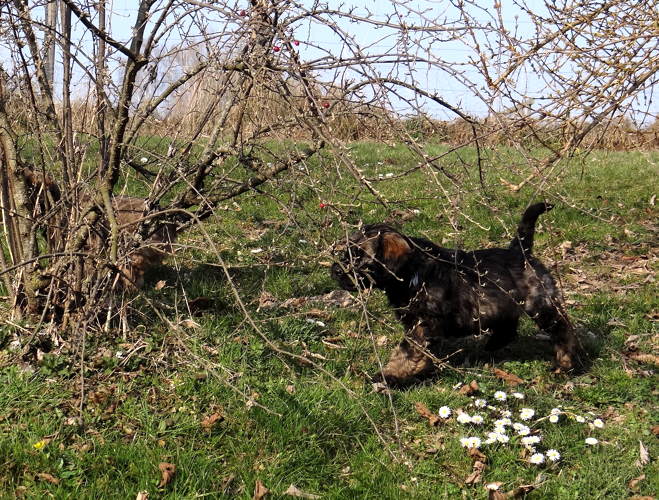 Wasser ist nicht nur zum Waschen da, sondern man kann herrlich darin rumplantschen, die Welt hört tatsächlich nicht am Gartentürchen auf, sondern dahinter gibt es wunderschöne 'Hundespielplätze' zum herumtoben, die kleinen braunen Hügel sind herrlich weich und man kann super darin 'Sandbaden' und buddeln, die umliegenden Wiesen sind endlos und beherbergen viele schmackhafte Dinge ( Rehkot, Hasenköttelchen, Würmchen) einfach nur lecker!!! Tante Urmel ist gar nicht sooo streng sondern kann auch 'Quatsch machen' und tolle Dinge wie 'über große Brücken gehen', den großen Treibball verbellen, und Maulwurfshügel ganz platt machen. Beeindruckend!