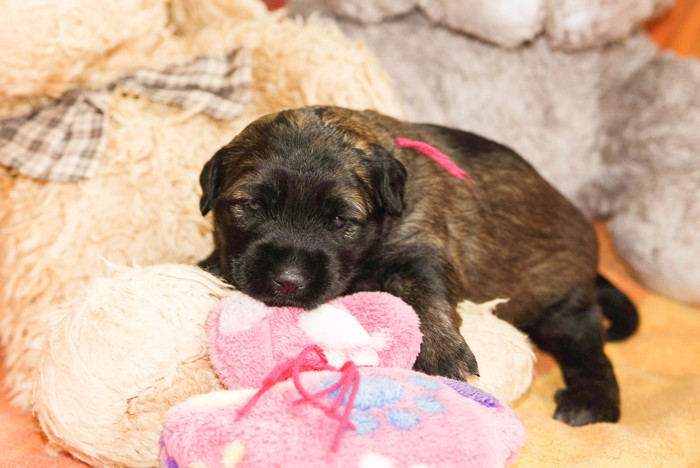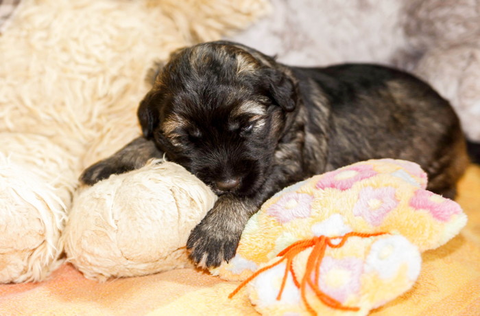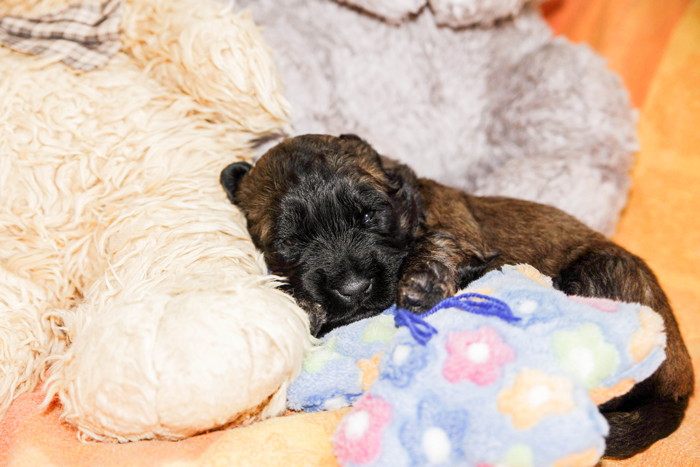 Sie haben es geschafft ... sie können bellen, knabbern, 'laufen' (na ja fast), erkennen unsere Stimmen, haben ihre Augen auf und nach wie vor ... immer Hunger! Trolli gibt ihr Bestes, aber diese kleinen Raupen Nimmersatt sind kaum satt zu bekommen. Für die Fotosession haben wir punktgenau ihre Müdigkeit nach einer ausgedehnten Mahlzeit an Troll abgepasst und konnten sie uns so für die Fotos supergut 'zurechtlegen'.