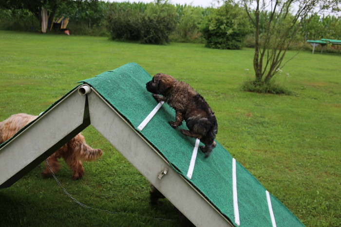 Briardrüden aus unserem L Wurf und ihre Tochter Janine einen Gos Rüden aus unserem C Wurf.