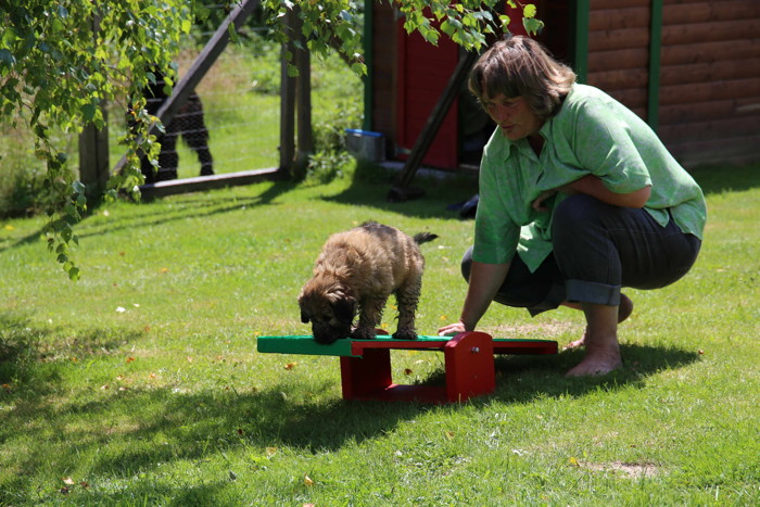 so hat sie auch gleich eine Briard Dame, die ihr freundlich aber bestimmt Hundebenehmen beibringen