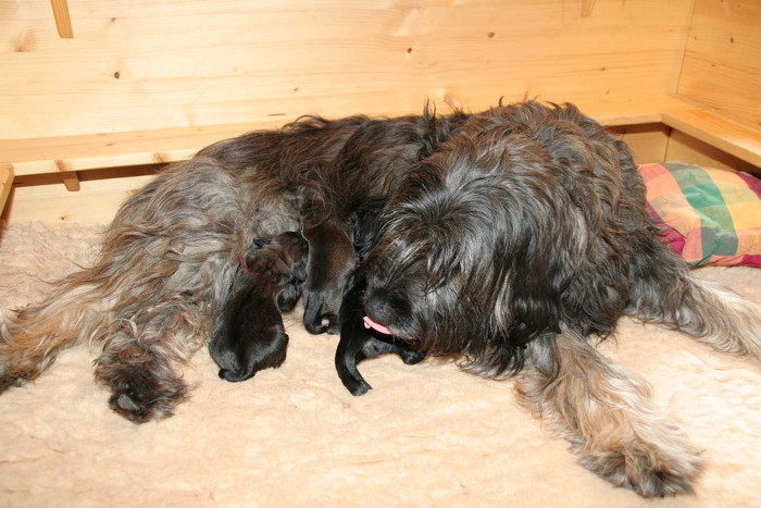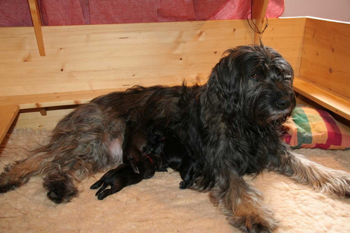 Urmel und Cobold sind läufig und wir haben uns dazu entschieden beide decken zu lassen. Für mein Urmeli ist es der letzte Versuch und vielleicht bastelt sie mir ja doch noch einen kleinen Wurf:-), nach vier Jahren Welpen Abstinenz. Sie hat sich mit einem einzigen Wurf mit 3 Hexlein nicht wirklich überarbeitet.- Coboldine hatte ihren letzten Wurf 2013, so dass wir uns auf einen Sommerwurf mit ihr freuen. Unsere Youngsters, Briardhündin Mimi und Gos Hündin Troll, stehen schon zum Hexlein sitten in den Startlöchern.