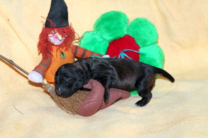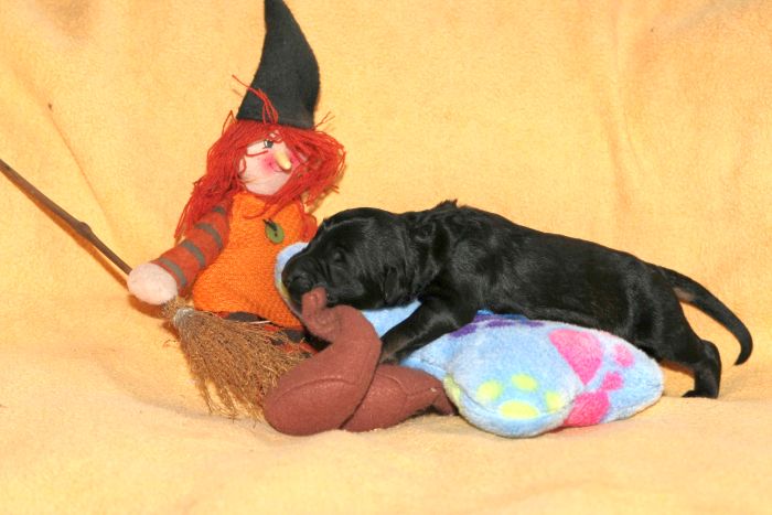 Nach einem etwa zähen Anfang, die erste Hündin kann in Steißlage, 'flutschte' es derart, dass wir kaum mit dem Wiegen, Bändchen machen und Bettchen erneuern nachkamen. In gut 2 ½ Stunden waren alle 7 Hexenkinder in 'trockenen' Tüchern und wir fix und fertig.