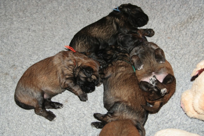 Unsere Hexlein entwachsen so langsam dem Kaulquappenstadium! Die Augen sind schon ein wenig geöffnet, die Beinchen funktionieren auch schon als Laufteile, die Lautäußerungen werden deutlich energischer und ähneln schon einem 'gefährlichen' Bellen und die Kontaktaufnahme mit uns Menschen wir deutlich mehr.
