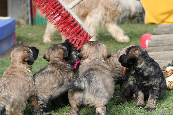 Die Hexlein haben ihr Talent entdeckt ... Fressen! Alles was ins Mäulchen passt, wird auch probiert. Egal ob Schuhe, Menschenarme, Gras, Rinderohren, Jacken, Besen oder auch das Schömmchen ...! Ihnen graut vor gar nichts. Selbst die Wurmpaste wurde hemmungslos verspeist. Nur ihre kleinen matschigen Kügelchen (Futter) begeistern sie nicht mehr sooo sehr. Dafür schmeckt der Quark und Joghurt supergut. Es ist nur etwas mühsam, ihn aus dem Fressen herauszupulen.
