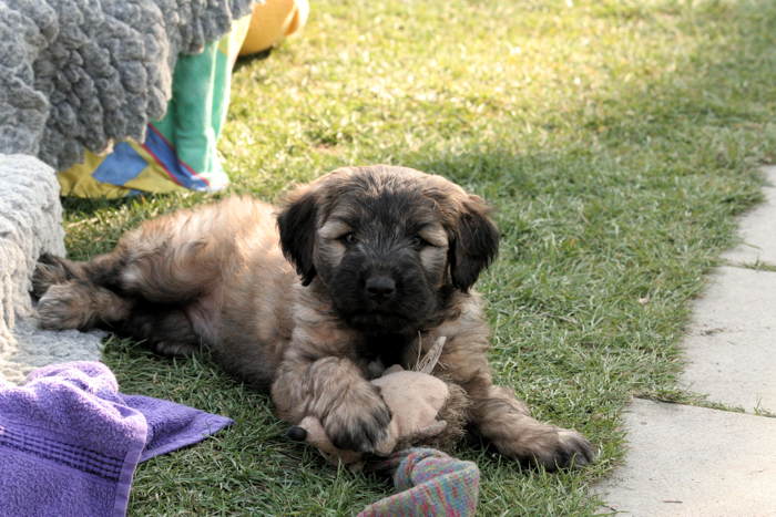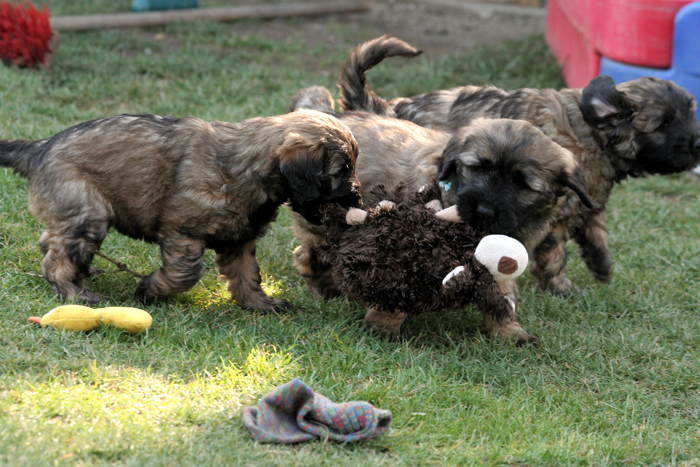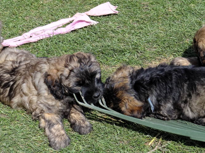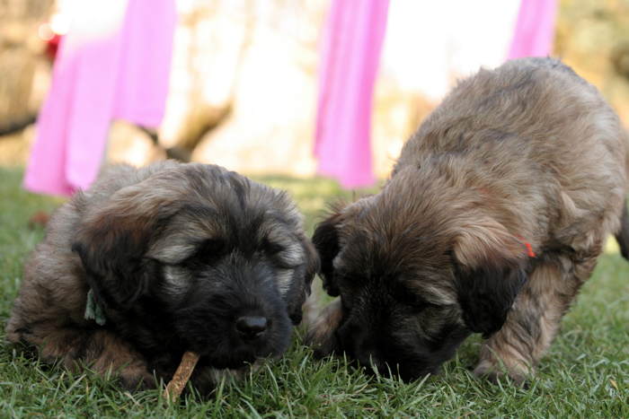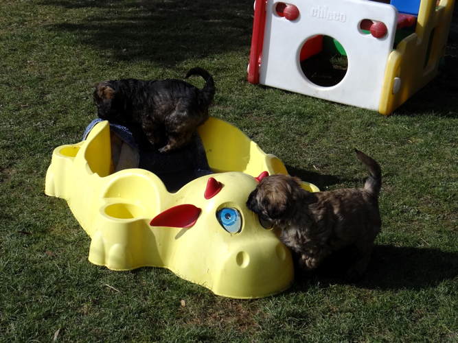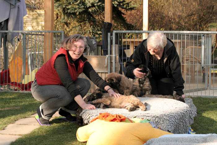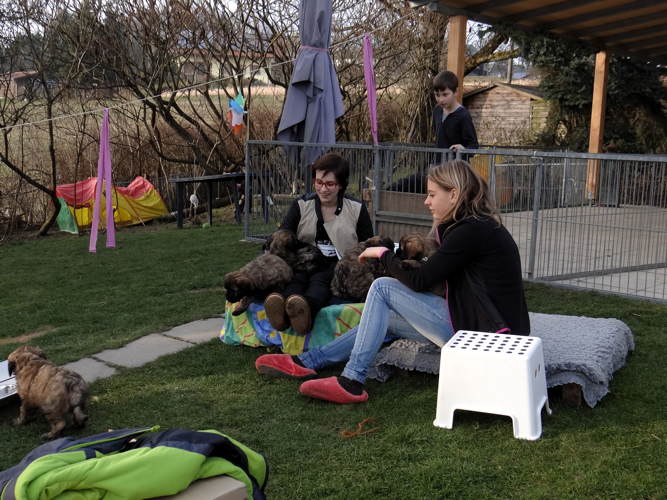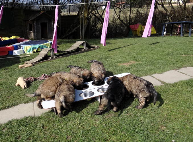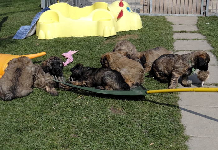 Täglich gehen wir mit ihnen jetzt spazieren und sie werden immer expansionsfreudiger. Alle Welpen haben jetzt schon ihre eigene Persönlichkeit mir der sie die vielen Neuen Dinge ganz unterschiedlich angehen.