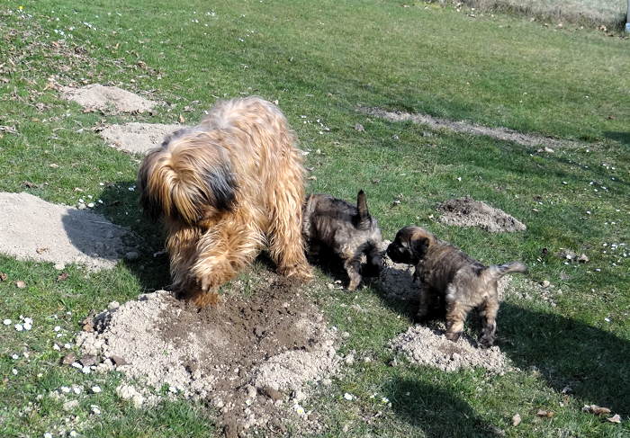Wasser ist nicht nur zum Waschen da, sondern man kann herrlich darin rumplantschen, die Welt hört tatsächlich nicht am Gartentürchen auf, sondern dahinter gibt es wunderschöne 'Hundespielplätze' zum herumtoben, die kleinen braunen Hügel sind herrlich weich und man kann super darin 'Sandbaden' und buddeln, die umliegenden Wiesen sind endlos und beherbergen viele schmackhafte Dinge ( Rehkot, Hasenköttelchen, Würmchen) einfach nur lecker!!! Tante Urmel ist gar nicht sooo streng sondern kann auch 'Quatsch machen' und tolle Dinge wie 'über große Brücken gehen', den großen Treibball verbellen, und Maulwurfshügel ganz platt machen. Beeindruckend!