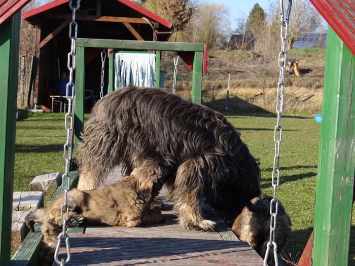 Acht Wochen sind wie im Flug vergangen. Unsere Hexenkinder wandern so peu à peu aus und ziehen zu ihren neuen Familien. Fido und Fina haben am Sonntag den Anfang gemacht, Finja verlässt uns am Freitag. Das Wochenende darauf fahren Figo und Frodo Tobi in die Schweiz und Fynn zu unseren Freunden Sabine und Helga.