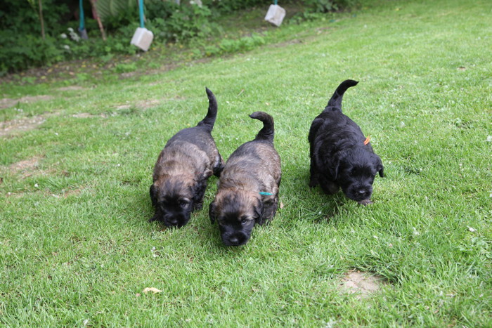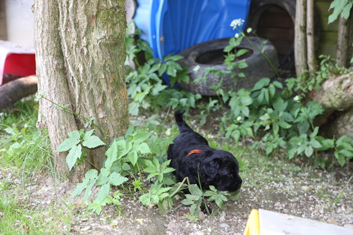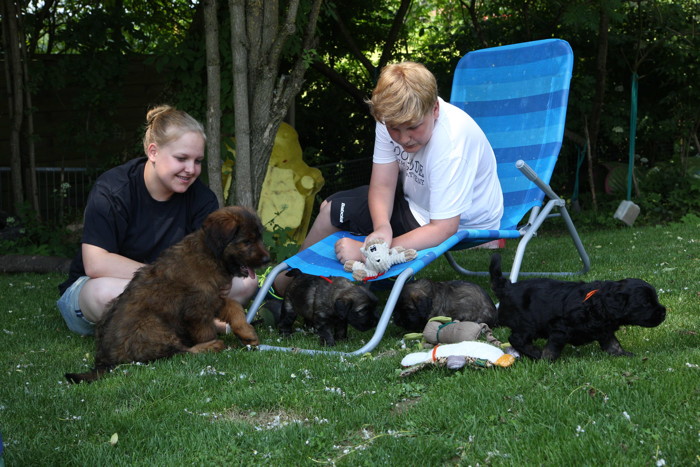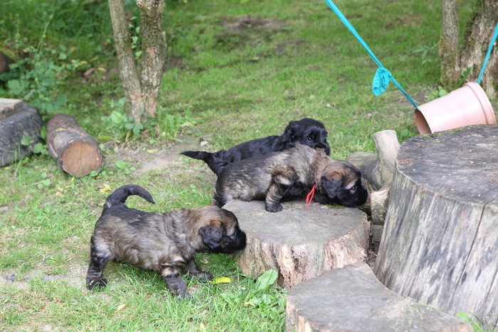 Halbzeit für unseren G Wurf. Vier Wochen sind sie nun alt und mutieren nun zu kleinen Eroberern. Aus den Maulwürfen sind hübsche tatkräftige Hexlein geworden.