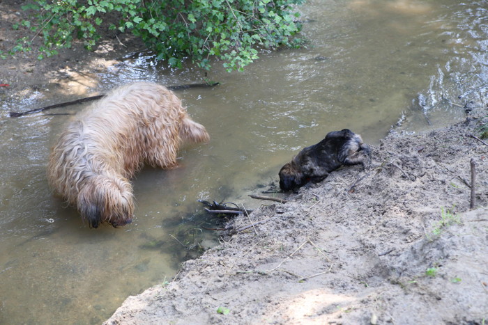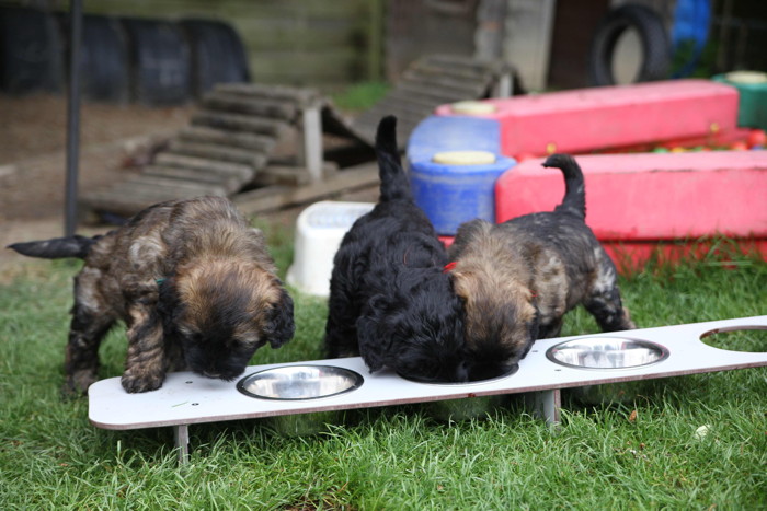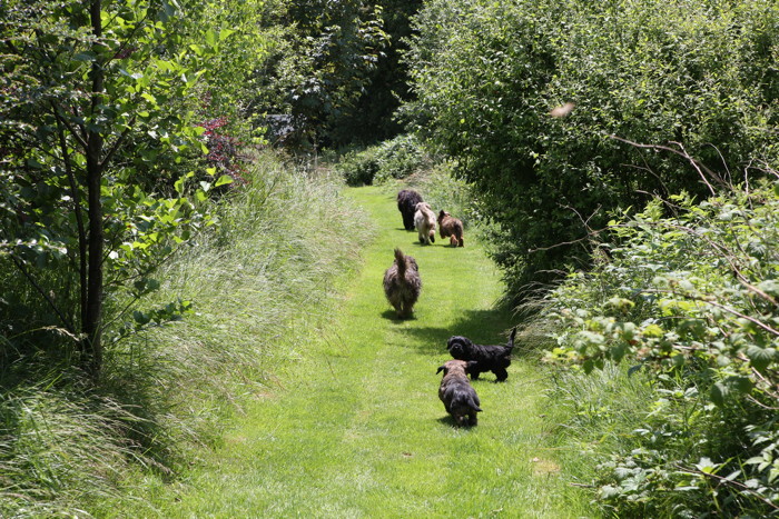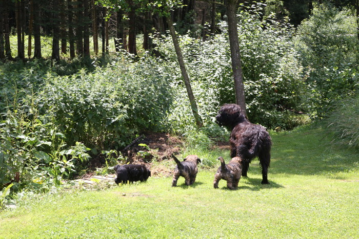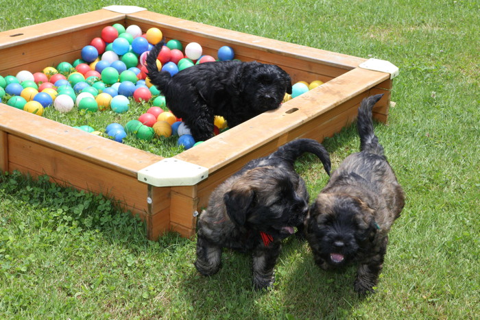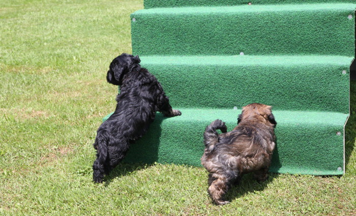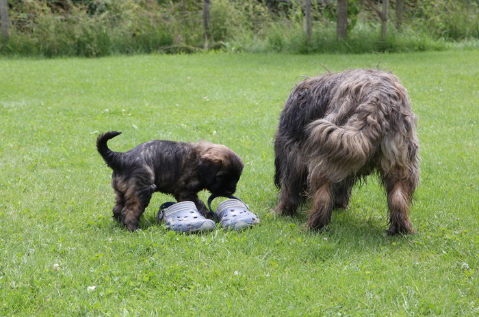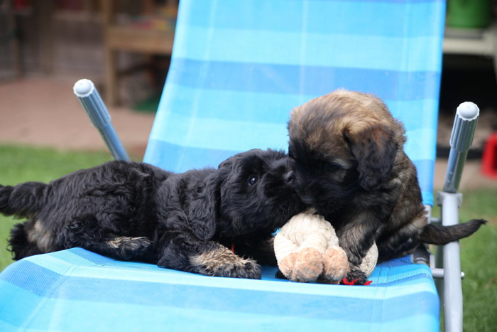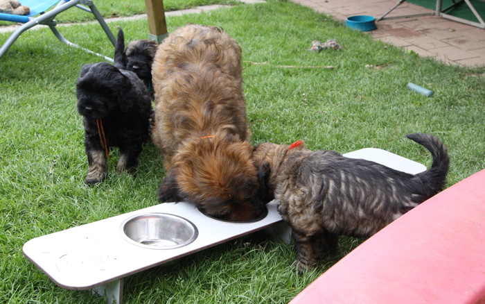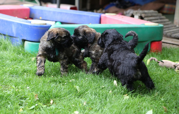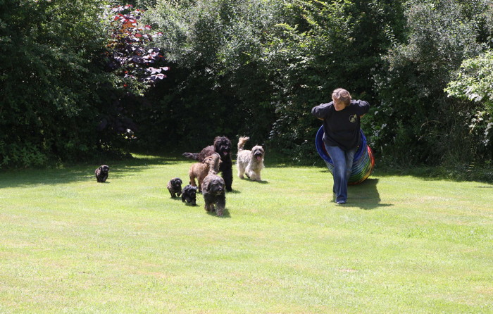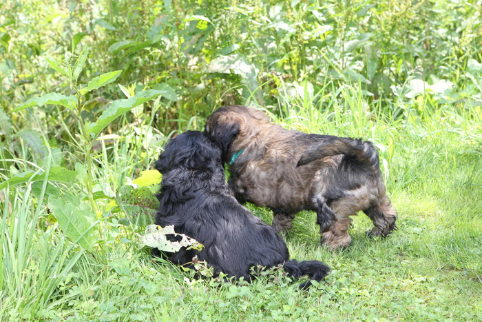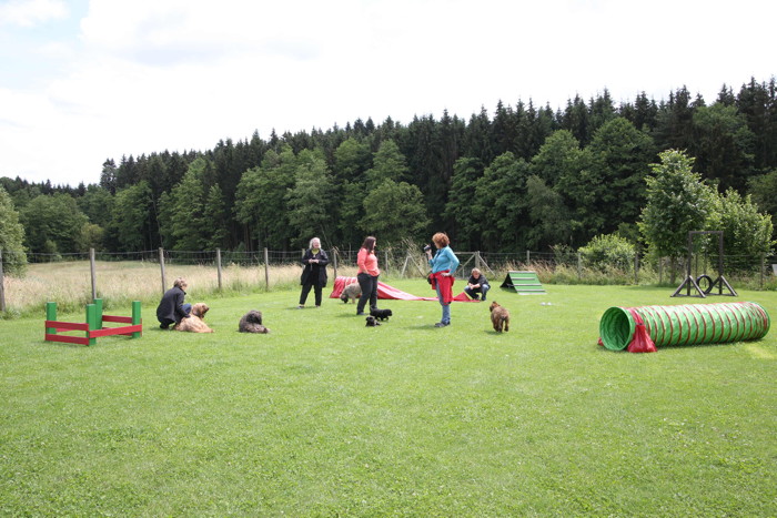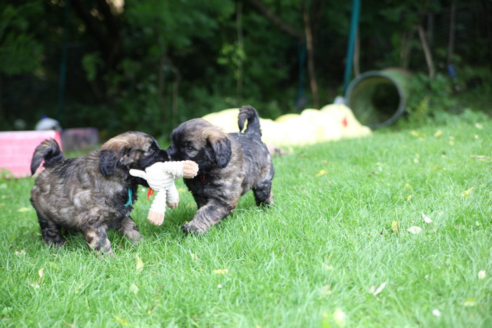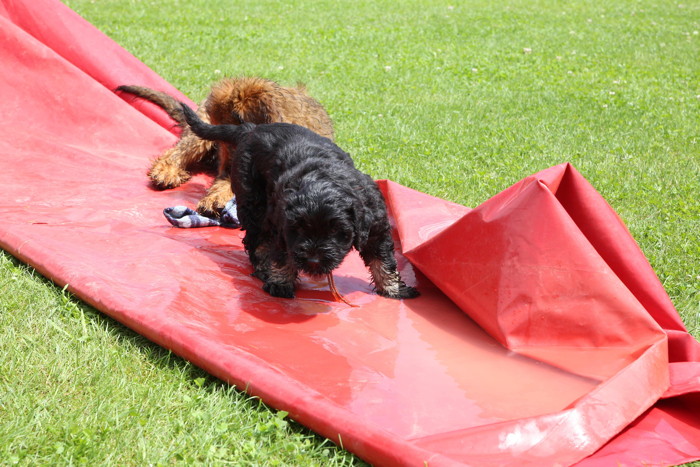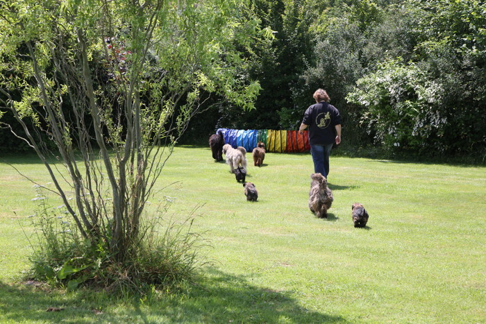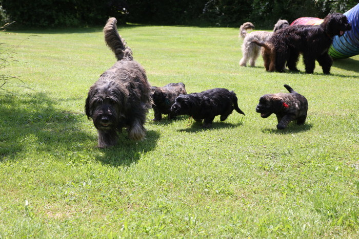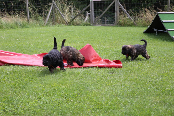 Unsere Hexlein sind flügge geworden, sie haben ihr Welpengehege schon längst erkundet und sind nun mit uns auf einen Abenteuerspaziergängen unterwegs. Die Hundeplätze erkundet, alle Geräte beschaut und teilweise ausprobiert, den 'reissenden' Bach bestaunt und schon gaaanz vorsichtig das Wasser gekostet, viele neue Menschen kennen gelernt, und ganz oft mit unseren Youngster, Jumai, Troll und Mimi gespielt.