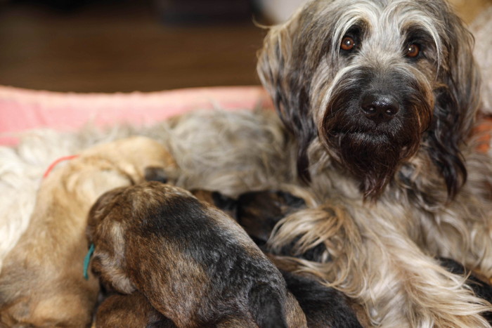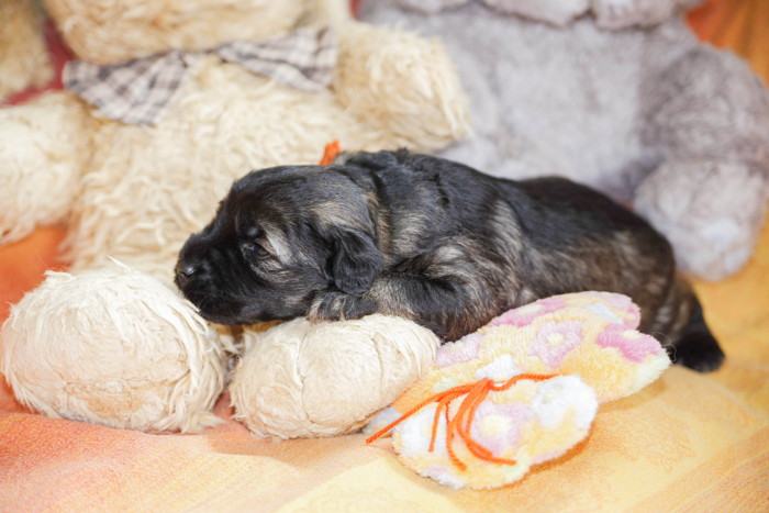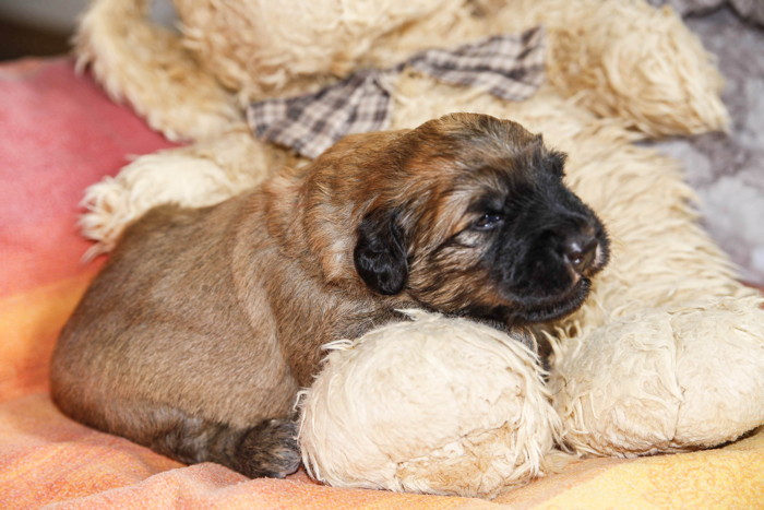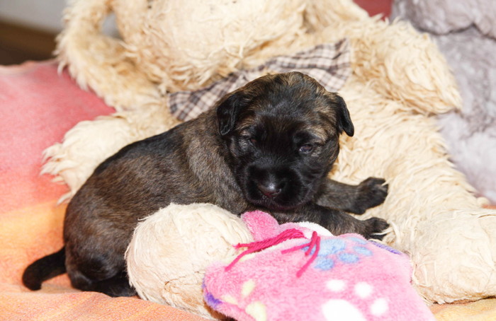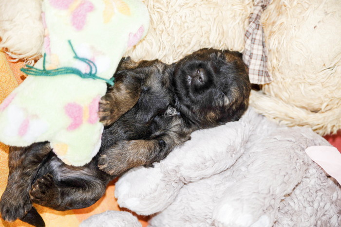 Sie haben es geschafft ... sie können bellen, knabbern, 'laufen' (na ja fast), erkennen unsere Stimmen, haben ihre Augen auf und nach wie vor ... immer Hunger! Trolli gibt ihr Bestes, aber diese kleinen Raupen Nimmersatt sind kaum satt zu bekommen. Für die Fotosession haben wir punktgenau ihre Müdigkeit nach einer ausgedehnten Mahlzeit an Troll abgepasst und konnten sie uns so für die Fotos supergut 'zurechtlegen'.