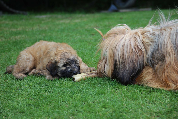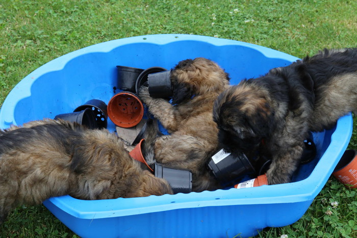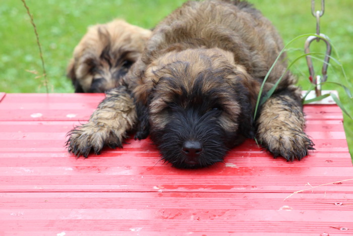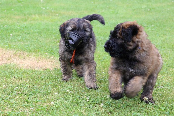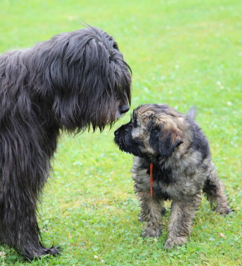 Briardrüden aus unserem L Wurf und ihre Tochter Janine einen Gos Rüden aus unserem C Wurf.