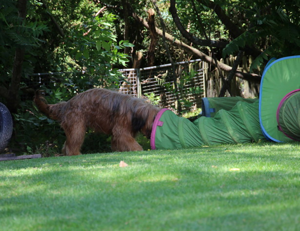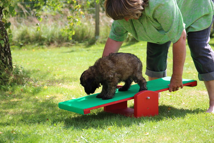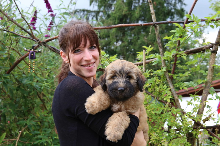 so hat sie auch gleich eine Briard Dame, die ihr freundlich aber bestimmt Hundebenehmen beibringen