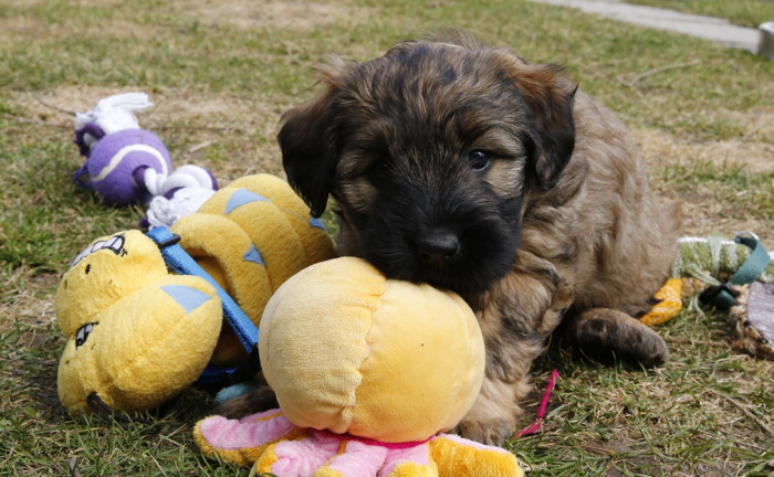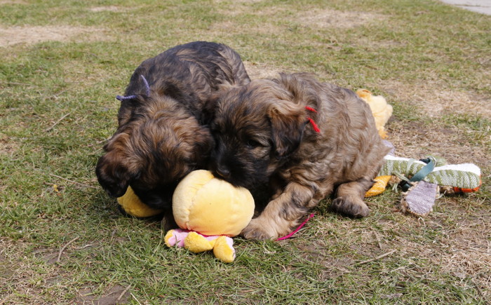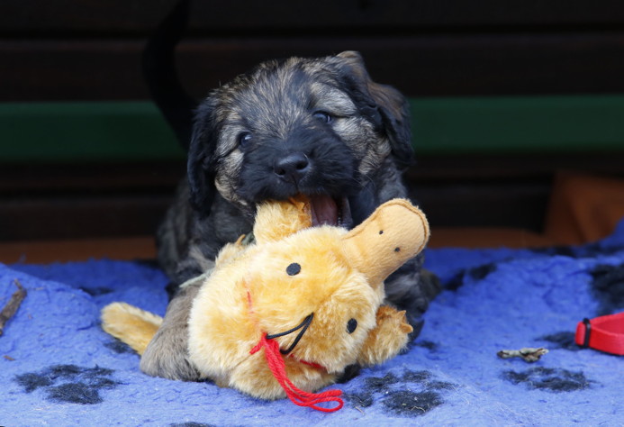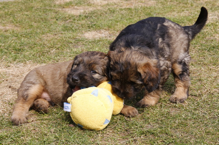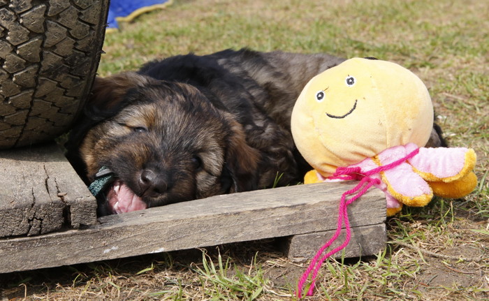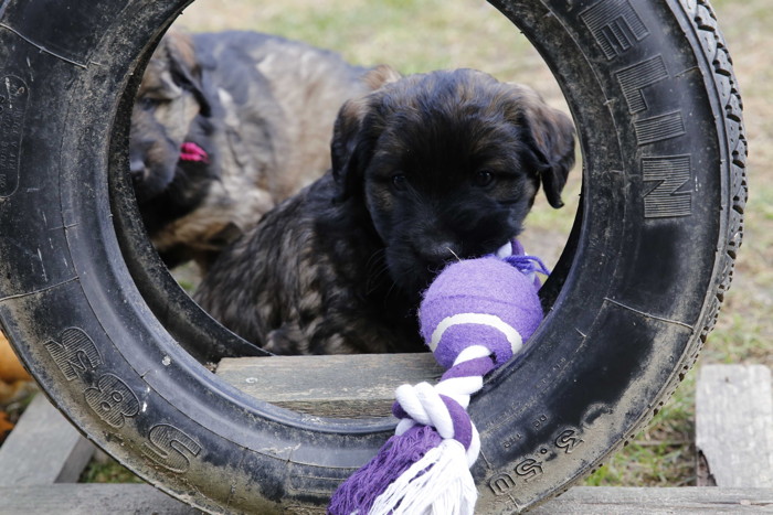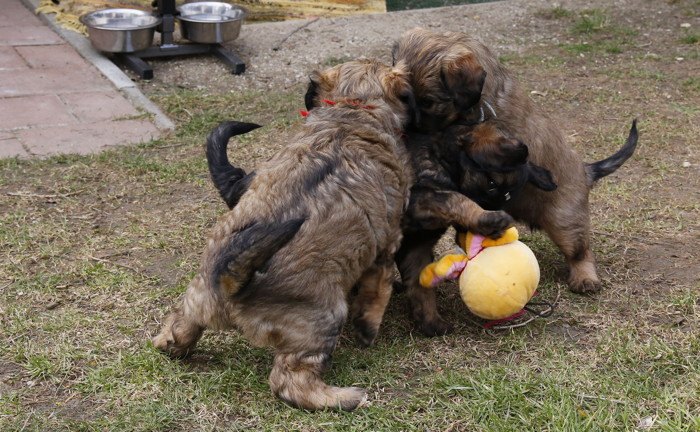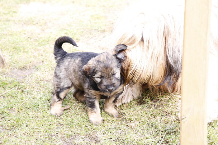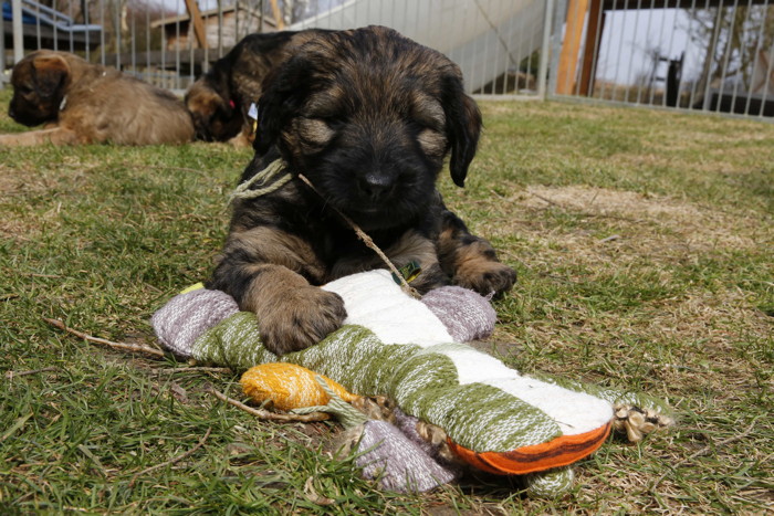 Der Rest des Rudels schaut noch von außen zu und wartet auf die ersten gemeinsamen Spaziergänge mit der gesamten Familie.